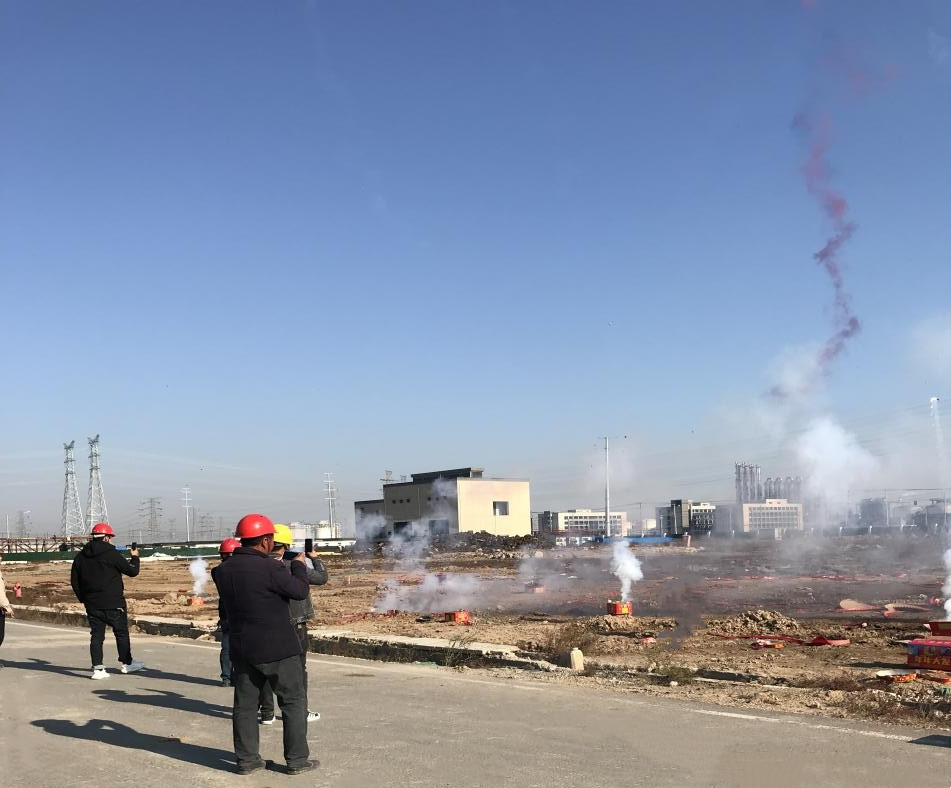 2021年11月12日上午9:28分,江蘇德邦興華化工科技有限公司污水站場地鞭炮齊鳴,由江蘇永超建設有限公司承建的污水站土建工程項目舉行了盛大的開工典禮。德邦興華科技公司常務副總經理李國安、永超公司總經理胡茂懷等領導出席了開工典禮。污水站土建工程開工,標志著我公司三大水處理系統(tǒng)工程包括凈水站、脫鹽水站及污水站已全面進入施工階段,希望在我公司與施工單位的共同努力下,盡早完成三大水處理項目施工并投入運行,為東區(qū)整體項目的順利投產提供水系統(tǒng)保障。